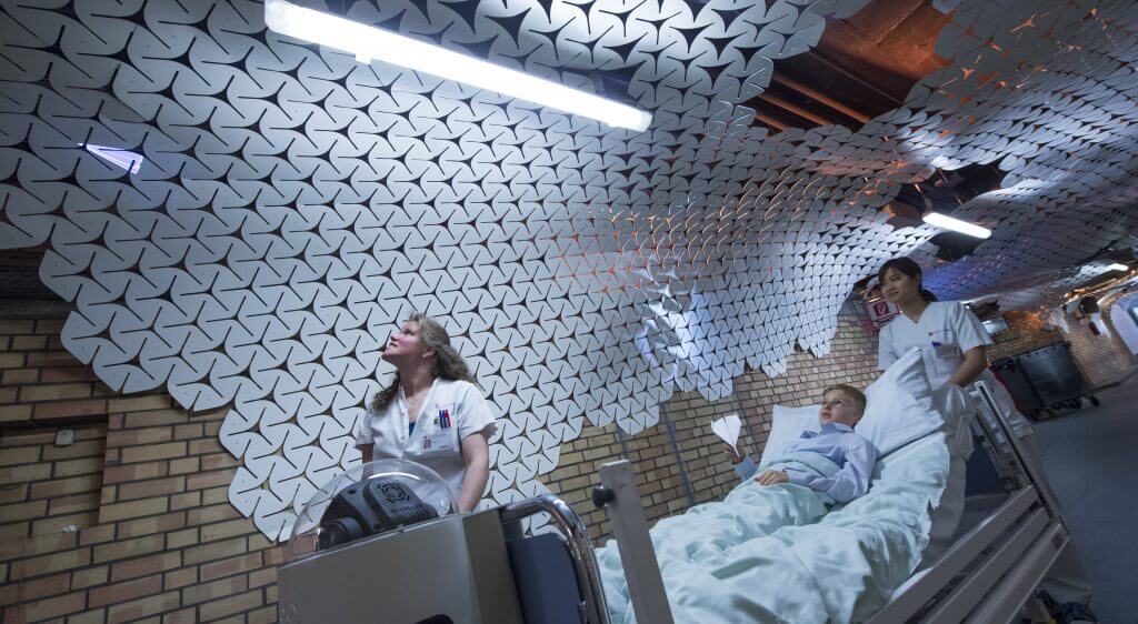 In Zukunft wird ein virtueller Papierflieger mit auf die Reise gehen und seine Bahnen über den Kindern auf einer eigens hierfür entwickelten Wolkendecke ziehen – eine spielerische Inszenierung, die vom Transport zum Operationssaal ablenken und die Fahrt zu einem beruhigenden Erlebnis machen soll. Die Flugbahn des Fliegers wird auf einer Decke aus 800 dreidimensional verformten Wolkenmodulen sichtbar gemacht. Die Intensität der „Tunnelflieger“-Inszenierung nimmt dabei im Laufe der Fahrt durch den Gang ab und gibt so dem Patienten die Möglichkeit, sich fallen zu lassen.